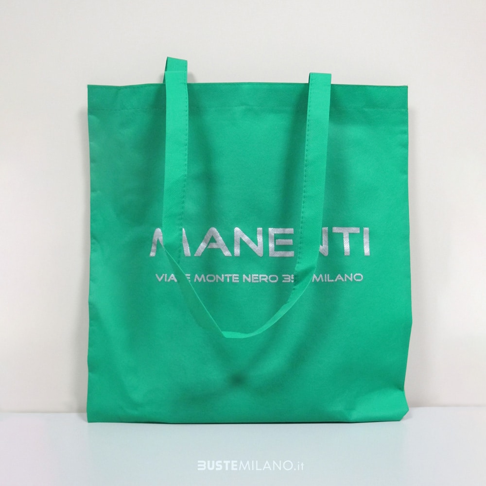 Le shopper in TNT (tessuto non tessuto) sono versatili e moderne, con cuciture termosaldate e manici lunghi da 30 cm che le rendono comode e facili da trasportare.