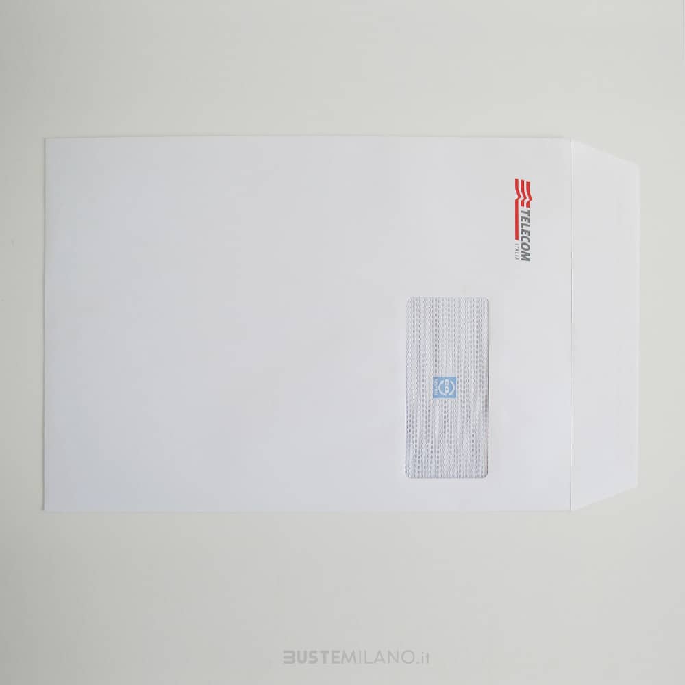 Le buste a sacco con finestra sono dotate di un lembo autoadesivo sul lato corto con strip removibile, garantendo praticità e sicurezza nelle chiusure.