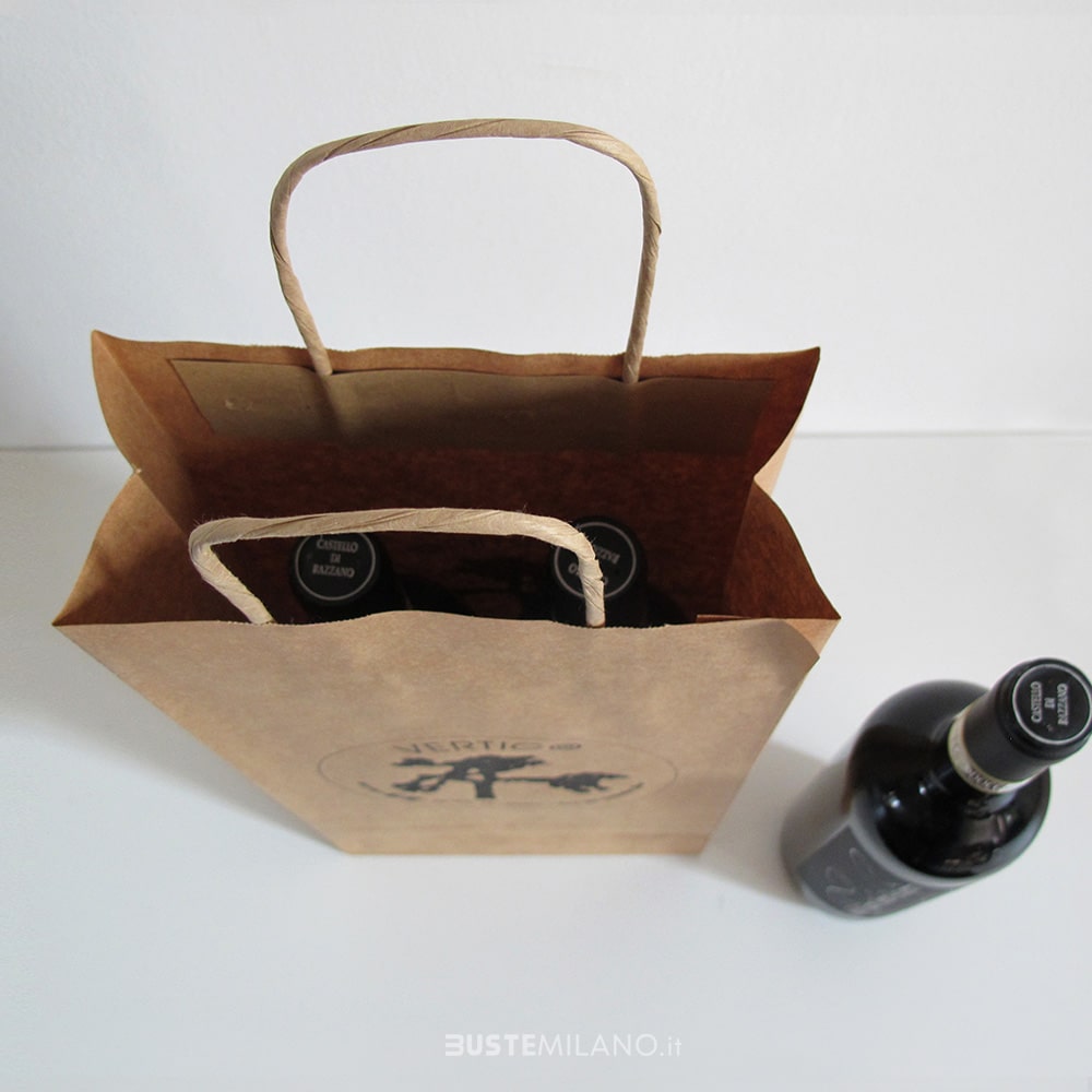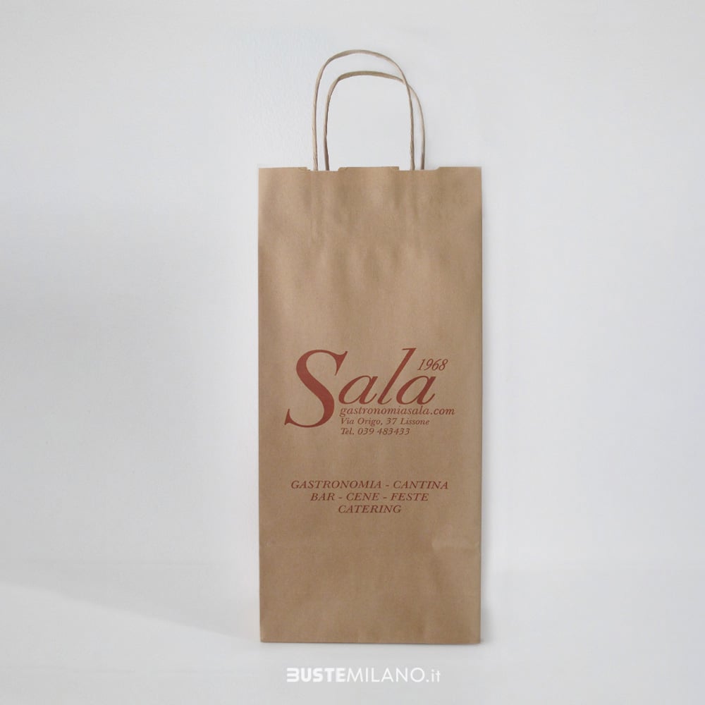 Pratico ed elegante, il nostro Shopper in carta kraft avana riciclata è ideale per trasportare fino a due bottiglie. Perfetto per enoteche, negozi alimentari e ristoranti, unisce resistenza e stile in un formato compatto.