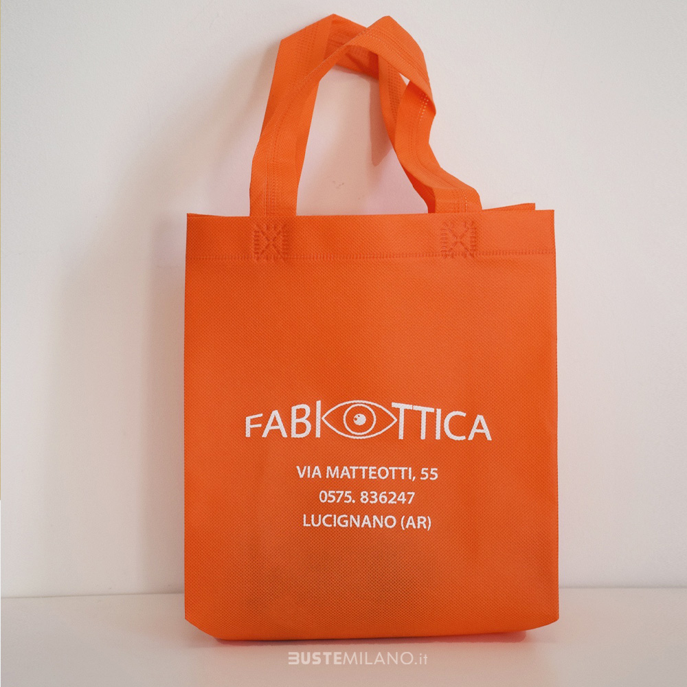 Le shoppers in TNT formato Mini (tessuto non tessuto) sono versatili e moderne, con cuciture, soffietti e manici termosaldati per renderle comode e facili da trasportare.