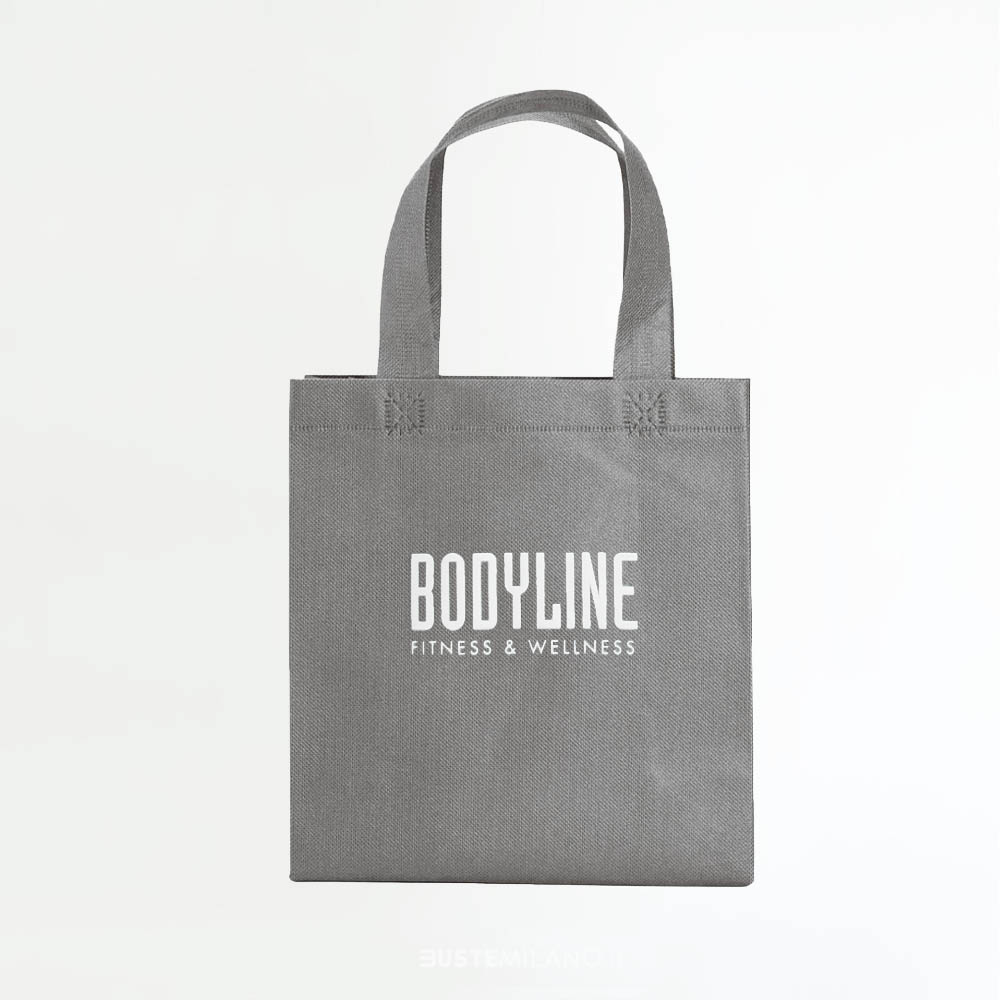 Le shoppers in TNT formato Mini (tessuto non tessuto) sono versatili e moderne, con cuciture, soffietti e manici termosaldati per renderle comode e facili da trasportare.